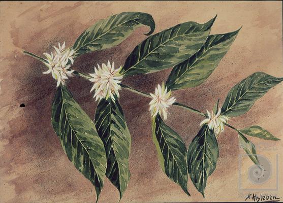 Autor Alsleben, Hans Título Rama en flor Técnica PinturaAcuarela Año Sfch. Medidas 24.5 x 34.5 cm Temática Composición floral Otros Datos El pintor alemán H. Asleben residió en Costa Rica. Durante la II Guerra fue enviado por el gobierno de Costa Rica a un campo de concetración. Fotografía de María E. Guardia 1999 Palabras Clave Café - Flor - Azhar - Rama - Hojas - Grano de oro