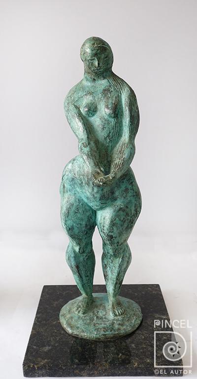 Autor Badilla, Crisanto Título Sin título Técnica EsculturaFundición En bronce Año 1979 Medidas 50 x 15.5 x 14 cm Temática Desnudo Palabras Clave Escultura - Mujer - Desnudo - Descalzo