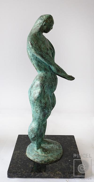 Autor Badilla, Crisanto Título Sin título (vista lateral) Técnica EsculturaFundición En bronce Año 1979 Medidas 50 x 15.5 x 14 cm Temática Desnudo Palabras Clave Escultura - Mujer - Desnudo - Descalzo