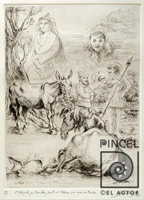 Don Quijote y Sancho junto al Ebro -