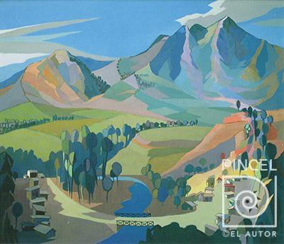 Autor Bolandi, Dinorah Título Vista de los Anonos Técnica PinturaÓleo sobre tela Año 1976 Medidas 71 x 85 cm Temática Paisaje Otros Datos Tomada de Alvarado, Ileana. Dinorah Bolandi. Editoral UCR. 2013 Palabras Clave Paisaje - Los Anonos - Montañas - árboles - Casas - Cielo - Vista - Puente