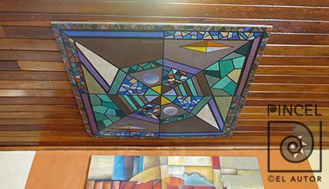 Autor Cantillo, Edwin Título Sin título Técnica PinturaAcrílico sobre tela Año 1999 Temática Abstracto Otros Datos Este cuadro se encuentra pegado en el techo de la casa del artista. Palabras Clave Abstracto - Formas geométricas - Geometría