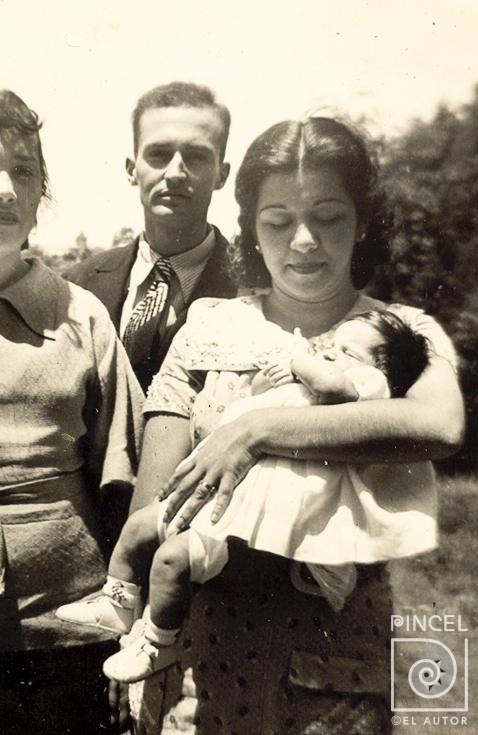Maruja, Francisco Amighetti y Dora Santiesteban con niña