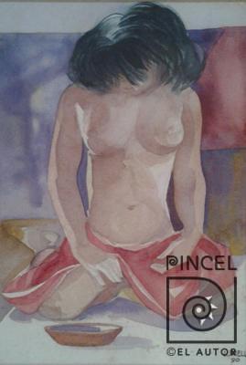 Autor Daell, Luis Título Desnudo Técnica PinturaMixta Acuarela y tintas sobre papel de grano medio Año 1990 Medidas 33 x 23 cm Temática Desnudo Otros Datos Tiene hongos y manchas Palabras Clave Mujer - Joven - Desnudo - Plato - Pensativa - Cabizbaja