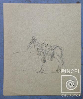 Autor Echandi, Enrique Título Sin título (caballo) Técnica DibujoTinta Año Sfch Medidas 10.6 x 8.9 cm Temática Animalística Palabras Clave Dibujo - Animal - Mamífero - Caballo - Montura - Silla - Ensillado