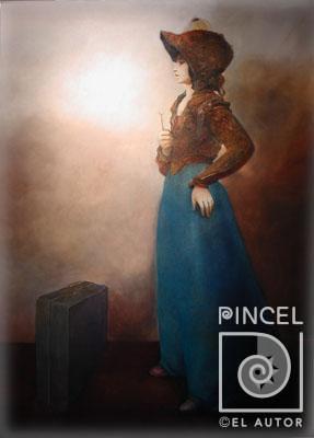 Autor Fernández, Rafael (Rafa) Título La viajera Técnica PinturaÓleo sobre tela Año 1997 Medidas 207 x 148.5 cm Temática Composición con figura Otros Datos Tomas realizadas en la exposición de Rafa Fernández - Premio Magón en el Museo Nacional el mes de mayo del 2003 Palabras Clave Viajera - Mujer - Valija - Equipaje - Jaula - Pájaro - Vestido - Elegante - Sombrero