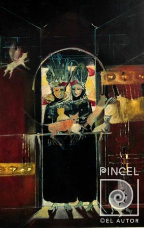 Autor Fernández, Rafael (Rafa) Título Siete gatos Técnica PinturaÓleo sobre tela Año 1970 Medidas 64 x 41 cm Temática Composición con figura Palabras Clave Gatos - Mujeres - Siete - Sombreros