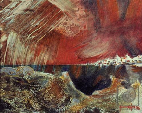 Autor García, Rafael Ángel (Felo) Título Punta Mala Técnica PinturaMixta Sobre cartón con tela adherida Año 1996 Medidas 18.5 x 24.5 cm Temática Paisaje Otros Datos De la serie Rincones de Aquí y Allá Palabras Clave Paisaje - Cielo - Viento - Mar - Agua - Costa - Punta - Pueblo - Lejanía
