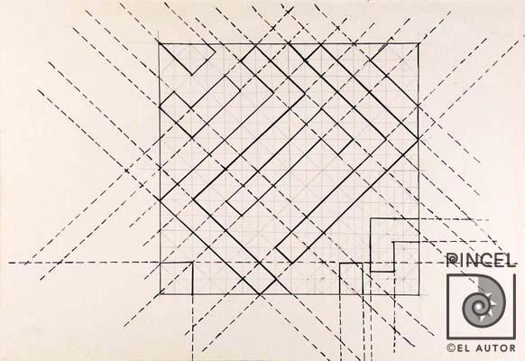 Autor González, Manuel de la Cruz Título Sin título. Boceto Técnica DibujoMixta Lápiz y plumilla sobre papel Año Sfch Medidas 21 x 29.5 cm Temática Abstracto Palabras Clave Abstracto - Boceto - Figuras - Geométricas - Diseño