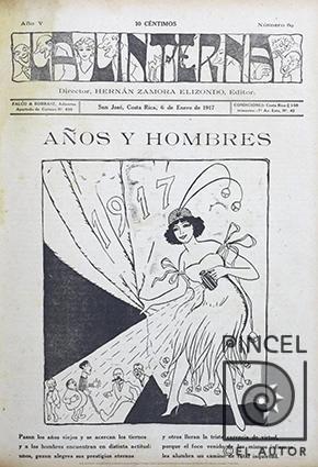 Autor Hernández, Francisco Título Años y hombres Técnica GrabadoOtros Año 1917 Temática Ilustración Caricatura Otros Datos Semanario La Linterna 6 Ene 1917 Tomado de internet www.sinabi.go.cr Palabras Clave Años y hombres - Telón - Cascabel - Enfocando - Luz - Chilindrines - Vestido - Año nuevo - Crítica - Burla - Chota