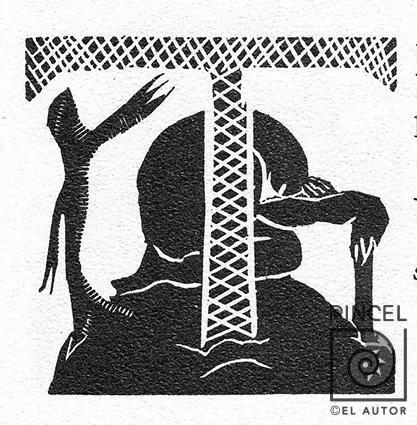 Viñeta y parte del poema. Página 11 del libro Revenar escrito por Max Jiménez. Revenar (tronco de árbol que ha sido cortado y nace nuevamente)
