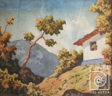 Autor Pacheco, Fausto Título Paisaje Técnica PinturaAcuarela Año Sfch Medidas 30 x 35 cm Temática Paisaje Palabras Clave Paisaje - Cielo - Nubes - Montañas - Vegetación - Arbustos - árbol - Casa - Típica - Ventana - Maceta - Adobe - Tejas - Soleado - Campo