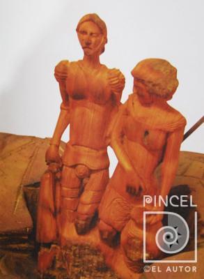 Dulcinea, Quijote y Sancho emergiendo del libro (detalle)