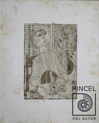 Autor Ranucci, Lucio Título Sin título Técnica GrabadoMetal Año 1976 Medidas 33 x 28 cm Temática Composición con figura Otros Datos Es la 4/20 Palabras Clave Hombre - Silla - Sentado - Espera - Instrumento musical - Música - Guitarra - Herramienta - Serrucho - Seriedad - Fuerza