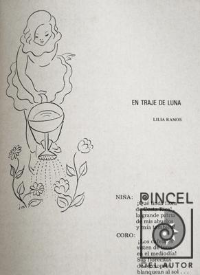 Este dibujo aparece en la obra de Lilia Ramos, En traje de luna, en el libro Luz y Bambalinas. Antología de teatro para niños de Lilia Ramos. Editorial Costa Rica, San José, 1982.