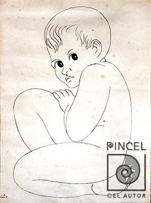 Autor Sánchez, Juan Manuel Título Niño Técnica DibujoTinta Año 1935 Medidas 19 x 26 cm Temática Retrato Palabras Clave Niño - Ojos - Asustados - Susto - Dulzura - Inocencia - Desnudo - Desconfianza