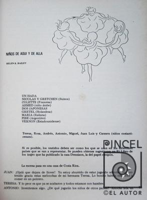 Este dibujo aparece en la obra Helen R. Bailey, Niños de aquí y de allá, pág. 85, en el libro Luz y Bambalinas. Antología de teatro para niños de Lilia Ramos. Editorial Costa Rica, San José, 1982.