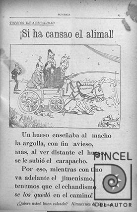 Autor Solano, Noé Título ¡Si ha cansao el alimal! (sic) Técnica GrabadoImpreso Año 1923 Temática Ilustración Otros Datos Semanario Bohemia 28 oct 1923 pag 15