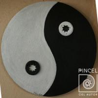 Foto de Zulay con obra Naturaleza Muerta con Flor