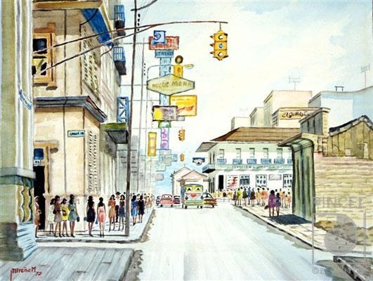 Autor Ureña, José (Chepito) Título San José avenida 2da Técnica PinturaAcuarela Año 1972 Temática Paisaje Palabras Clave Paisaje - Ciudad - Edificios - Mujeres - Vestidos - Caminar - Rótulos - Propaganda - Comercio - Calle - Acera - Bus - Carros - Semáforos - San José - Capital - Avenida 2da