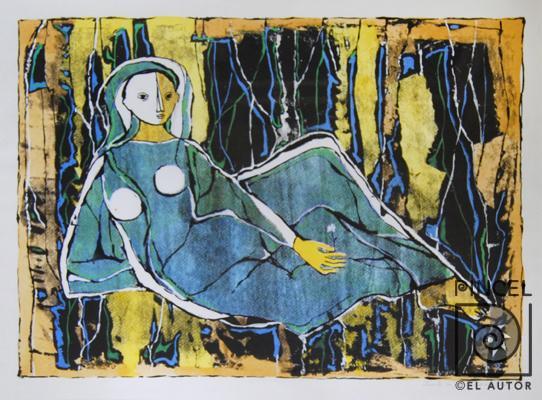 Autor Valverde, César Título Diente de león Técnica GrabadoSerigrafía Intervenida Año 1984 Medidas 42 x 58 cm Temática Composición con figura Palabras Clave Mujer - Seriedad - Mano - Flor