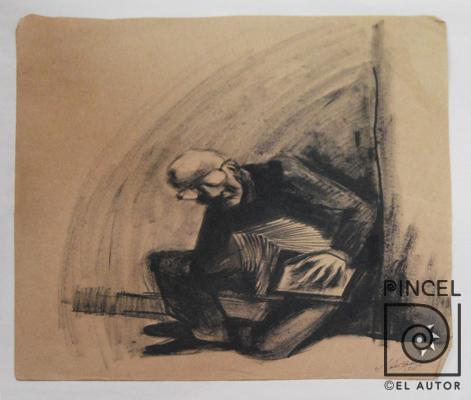 Autor Zeledón Guzmán, Néstor Título Músico callejero Técnica DibujoCarboncillo Año 1980 Medidas 58 x 45 cm Temática Composición con figura Palabras Clave Dibujo - Hombre - Músico - Instrumento - Música - Acordeón - Bandoneón - Tocar - Melodía - Calvicie - Anteojos - Calle - Acera - Pobreza