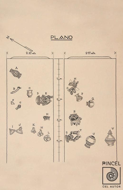Son ilustraciones de piezas cerámicas halladas en la llamada huaca de Zapandí. Zúñiga realizó las ilustraciones para la publicación “Una huaca en Zapandí”, folleto descriptivo que Jorge Lines editó en setiembre 1936 para relatar lo acontecido con el hallazgo y clasificar los objetos.