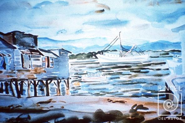 Autor Amighetti, Francisco Título Casas y barco Técnica PinturaAcuarela Año 1946 Temática Paisaje Marino Palabras Clave Paisaje - Marino - Mar - Agua - Costa - Playa - Cielo - Nubes - Casas - Barco - Pesquero