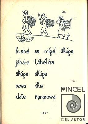 Del Libro "Yo voy a decir" en Lengua Cabécar de Ricardo Pozas A. Texto introductorio: "La Junta aprecia y agradece la colaboración artística que acompaña al texto, debidas al acierto del notable pintor costarricense, Profesor Francisco Amighetti, quien con ello ha puesto sus dones al servicio de la Patria"
