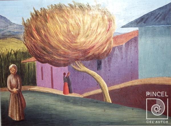 Autor Amighetti, Francisco Título Viejitas conversando Técnica PinturaÓleo sobre tela Año Sfch. Medidas 31.5 x 43 cm Temática Composición con figura Paisaje Palabras Clave Mujeres - Acción - Hablar - Conversar - Amistad - Anciana - Vieja - Mayor - Casas - Cielo - Montañas - Vegetación - árbol