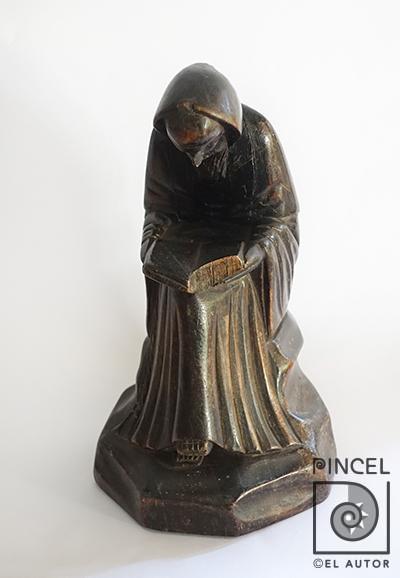 Autor Bermúdez, Víctor Manuel Título Monje leyendo Técnica EsculturaTalla Directa en madera Año 1939 circa Medidas 22 x 12 x13 cm Temática Religioso Otros Datos Esta talla es atribuida a Víctor Manuel Bermúdez. Un pedazo del libro está quebrado y no fue restaurada. Palabras Clave Escultura - Hombre - Religioso - Monje - Leyendo