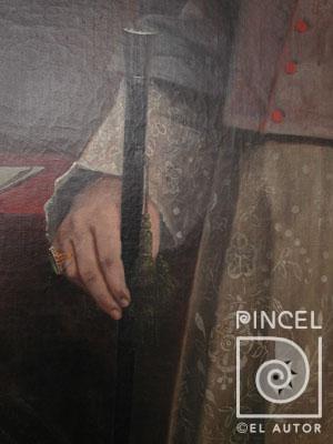 Obra atribuida a Aquiles Bigot. A la derecha dice: "Bernardus Augustus Thiel et Hoffmann. Natus die 1 aprilis 1850. Ordinatus sacerdos die 6 Junii 1874. Praeconizatus die 27 febraii 1880.Consacratus Episcus die 5 Septembris 1880" Muy mal restaurado, hay zonas rehechas sin cuido, ciertos fondos pintados con spray no dejaron trazos de pincelada.