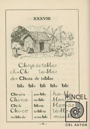 Este dibujo aparece la página 82 del libro Silabario Castellano de Porfirio Brenes Castro, calígrafo Fabio Rojas Díaz, Imprenta Moderna, 1914.