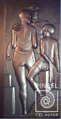 Autor Chacón, Juan Rafael Título Bañistas Técnica EsculturaTalla Relieve en madera Año Sfch. Medidas 130 x 56.5 cm Temática Composición con figura Otros Datos Relieve con pátina dorada. En 1980 estaba rajado. © Foto María E. Guardia Palabras Clave Escultura - Familia - Hombre - Mujer - Niña - Unión - Seriedad - Bañistas - Abrazo - Paño - Toalla
