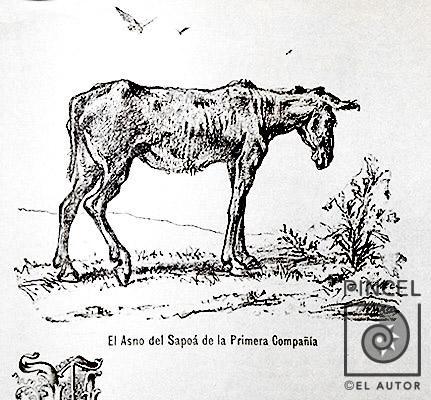 Autor Desconocido Título El Asno del Sapoá de la Primera Compañía para libro Revista de Costa Rica S. XIX Técnica GrabadoImpreso Año 1902 circa Medidas 10 x 13 cm Temática Animalística Otros Datos Pablo Baixench trabajo gráfico.Dibujos originales hechos para libro Revista de Costa Rica S. XIX. de Fco. Ma. Iglesias y J. Fernández Ferraz Palabras Clave Animal - Asno - Burro - Mula - Flaco - Triste - Viejo