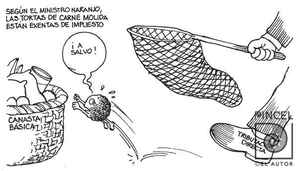 Autor Díaz, Hugo Título Canasta básica Técnica DibujoTinta Plumilla Año Sfch. Temática Caricatura Otros Datos Publicado en La República. Palabras Clave Canasta - Básica - Alimentos - Escapar - Redes