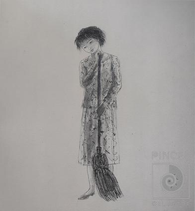 Autor Escámez, Julio Título Cenicienta Técnica DibujoTinta china sobre papel Año Sfch Temática Composición con figura Otros Datos Tomado del libro Julio Escámez Pintura/Dibujos/Grabados 1996 Palabras Clave Cenicienta - Escoba - Muchacha - Barrer - Limpiar - Joven - Vestido - Pensativa - Cuento