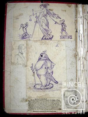 Álbum rojo. Contraportada. Caricaturas y tipos que por sus hechos i fechorias figuran en Costa-rica