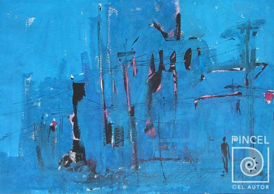 Autor González, Leonel Grupo Bocaracá Título Sin título Técnica PinturaAcuarela Año Sfch Medidas 55.7 x 75.5 cm Temática Paisaje Palabras Clave Paisaje - Lugar - Costa Rica - Calle - Postes - Persona - Soledad - Inseguridad