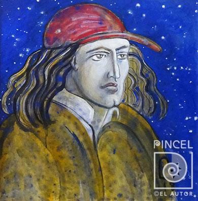 Autor Lizano, Roberto Grupo Bocaracá Título Nocturno Técnica PinturaMixta Año 2018 Medidas 100 x 100 cm Temática Composición con figura Otros Datos Díptico de la obra Nocturno Palabras Clave Diurno - Hombre - Personaje - Nariz - Gorra - Sombrero - Estrellas - Cielo - Abrigo