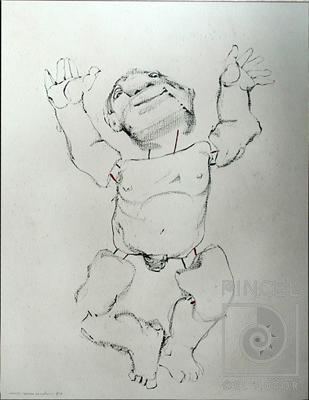 Esta obra se refiere a Anastasio Somoza. En esta época dibujaba con la parte de atrás de un pincel.