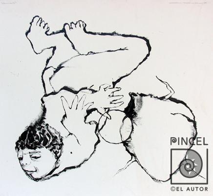 Autor Poveda, Carlos Título Nacimiento Técnica DibujoTinta Esmalte sobre papel Año 1964 Medidas 46 x 49.5 cm Temática Composición con figura Otros Datos Palabras Clave Niño - Caer - Nacer - Bola