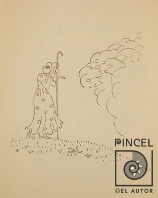 Ilustración del poema de Rafael Pombo, Pastorcita, en el libro Versos para niños, seleccionados por Emma Gamboa. San José, Librería Lehmann, Costa Rica. 1941