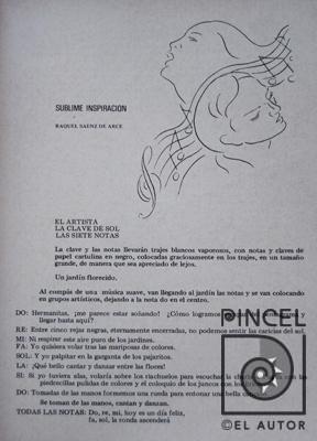 Este dibujo aparece en la obra de Raquel Sáenz de Arce, Sublime inspiración, pág. 53, en el libro Luz y Bambalinas. Antología de teatro para niños de Lilia Ramos. Editorial Costa Rica, San José, 1982.