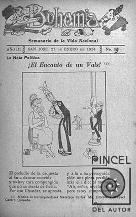 Autor Solano, Noé Título ¡El encanto de un vals! Técnica GrabadoImpreso Año 1924 Temática Ilustración Otros Datos Semanario de la vida nacional Bohemia 2 ene 1924 pag 7 Palabras Clave El encanto de un vals - Baile - Música - Poste - Perro - Mujer - Abanico - Silla - Sentada - Bailar - Cortejo - Sombrero - Vestido
