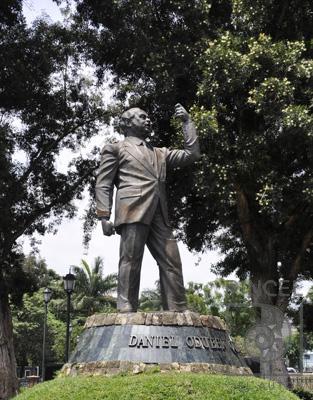 Autor Villegas, Olger Título Monumento a Daniel Oduber Técnica EsculturaFundición En bronce Año 1998 Temática Retrato Otros Datos Está en el costado oeste del Jardín de Paz, parque ubicado frente al Edificio Metálico, entre los parques Morazán y España Palabras Clave Escultura - Hombre - Personaje - Histórico - Político - Expresidente - Daniel Oduber