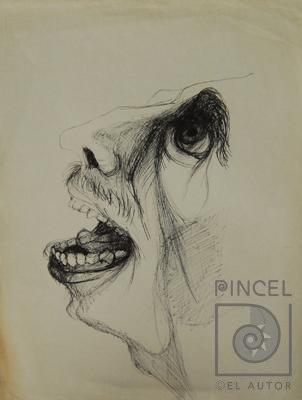 Autor Zeledón Guzmán, Néstor Título Sin título. Rostro 17 Técnica DibujoTinta Marcador de felpa sobre papel Año Sfch Medidas 28 x 21.5 cm Temática Composición con figura Palabras Clave Dibujo - Rostro - Hombre - Perfil - Boca - Dientes - Bigote - Desesperación - Angustia