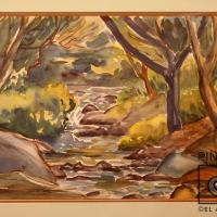 Rafa Fernández con Guido Sáenz observando la obra La bañista