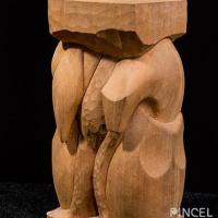 Mi familia. Detalle Giovanna con un totem en recuerdo del tiempo en que vivieron en Vancouver, las pirámides de Egipto y la casa en Montezuma.