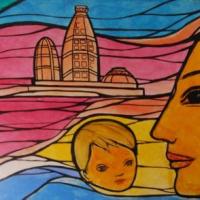 Mi familia. Su hija Rocío y su nieto Jean Pierre que viven en Vrindavan, India. Al fondo se ven el templo hindú y las pirámides en México